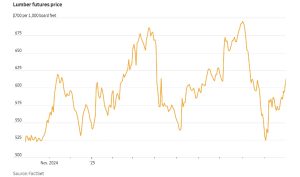 US lumber futures traded at $570 per thousand board feet, retreating from…
