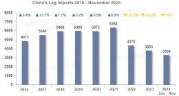 According to the latest data, China’s log imports in January-November 2024 were 3.304 million…